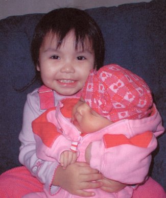 Baby Tyra Mary Benjamin with her big sister Jocelyn Benjamin
